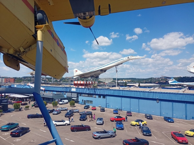 This museum has everything from bikes, to militaria, hot-rods, American classic cars, Le Mans winners and steam trains but I was obviously there for the aviation elements. It is spread over 3 buildings and the ticket cost €21. When I say spread over… I mean that in the physical way as the halls are jammed with so much stuff but even on top of the buildings they have more. On this day there was an Audi cabriolet car meet so loads in the car park.